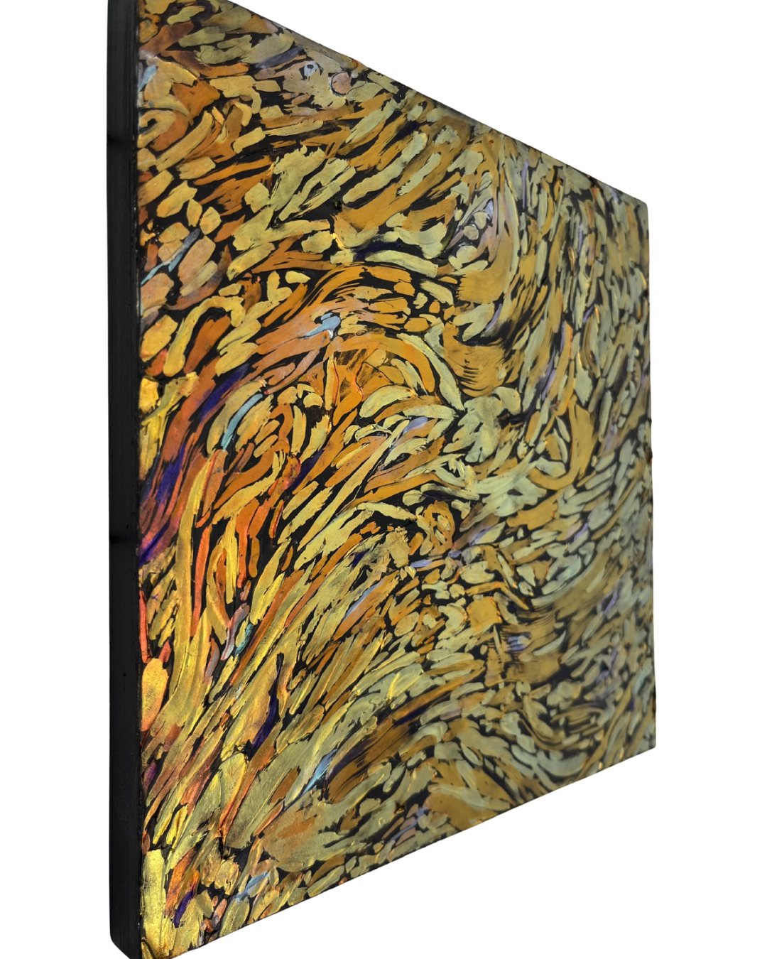 Original 2D Interactive Sculptural Mixed Media on Wood Panel.